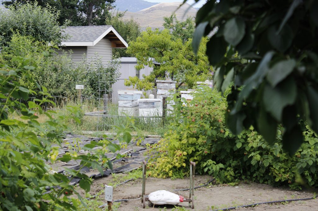 I recognized the property. The house is older and set back from the road, hardly visible behind a number of mature fruit trees. There is often a “Honey for Sale” sign at the end of the driveway. There was much more there, however, than I realized. It appeared to be a once-thriving orchard with numerous mature apple and pear trees, as well as apricots, plums, grapevines, raspberries, and a large overgrown vegetable garden plot. Several dilapidated outbuildings, piles of rusting tools, and an old apple press completed the picture.