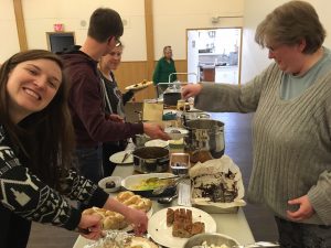It was another fantastic Network Meeting on April 4th! There were several firsts: we tried out a new seating arrangement to accommodate our larger group sizes. Folks seemed to enjoy sitting in smaller groups at the tables because it was easier to get to know people better. Events and announcements were listed on poster paper for people to look at over dinner and will be included in the summaries after each meeting. We were also thrilled to welcome ten people who were at the meeting for the first time!