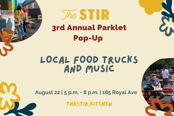 Join us at 185 Royal Ave, The Stir, on Thursday August 22nd from 5-8 p.m. to enjoy local food and music! Entry is free, food tickets are $7 and can be redeemed at all vendors.