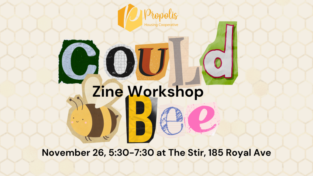 Join Propolis Housing Cooperative for this Could Bee Zine Workshop on the topic of Building Resilient Community-led Housing! Event-goers will craft zine pages together, exploring how we can build affordable housing for all, design for climate resilience, and foster networks of belonging and mutual aid in cooperative housing buildings. The results of this workshop will contribute to the planning process for Propolis Cooperative’s first affordable, net zero housing development at 422/424 Tranquille Rd.