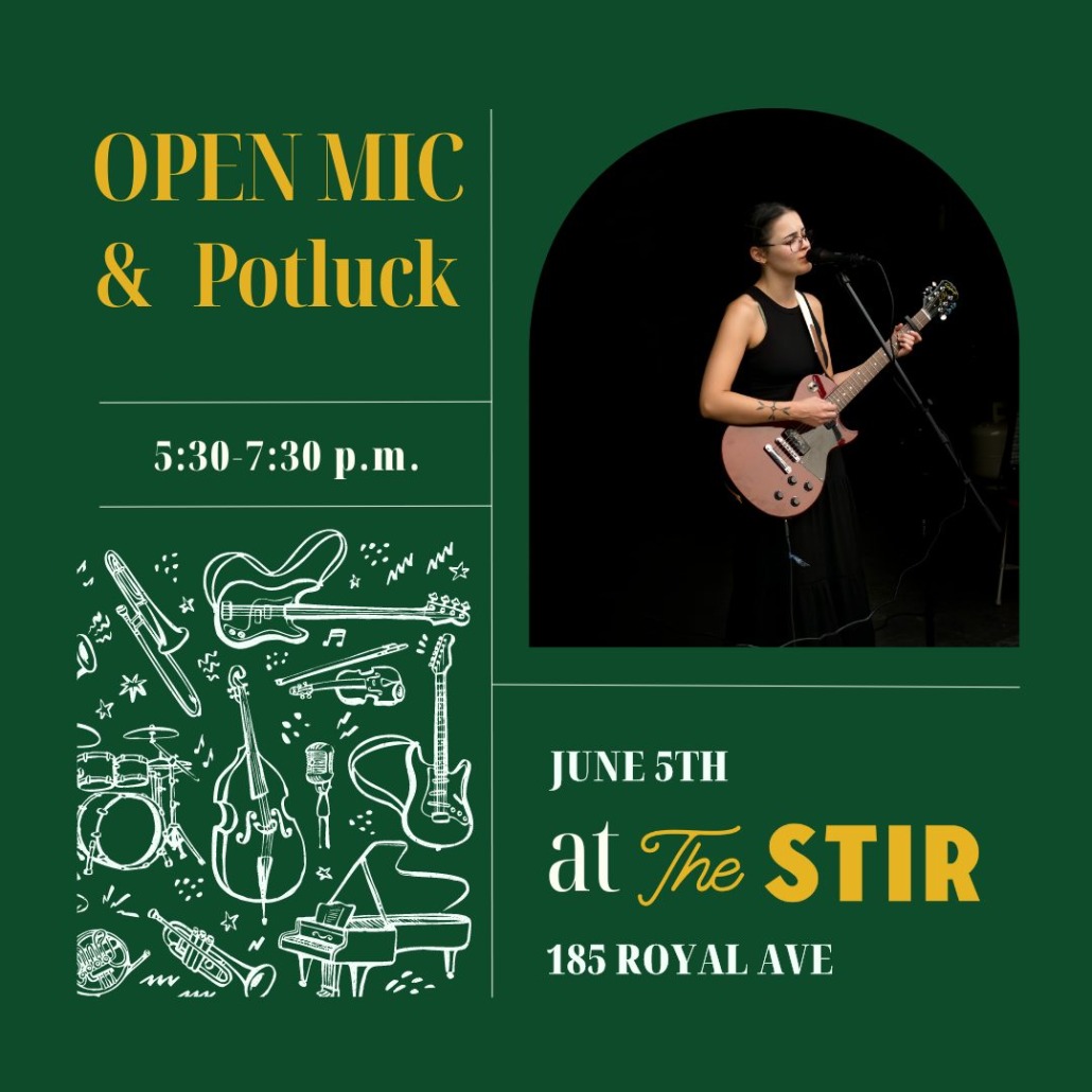 Warm up your voice, brush off that guitar, and join us on June 5th for an open mic night and potluck! The event run from 5:30-7:30 p.m. at the Stir, 185 Royal Ave, Kamloops, B.C.