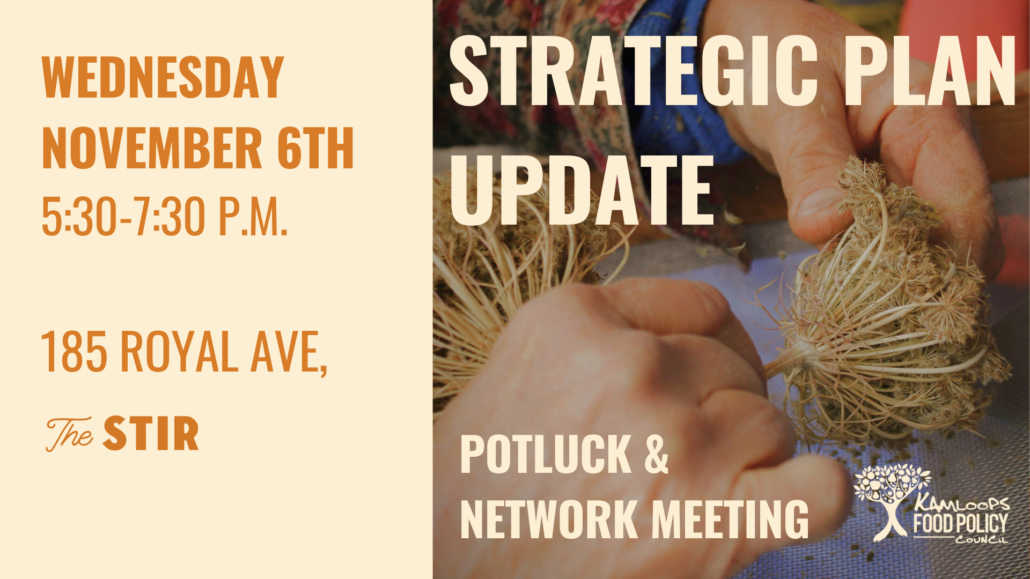 Join us on the first Wednesday of every month for our Network Meeting & Potluck! The event runs from 5:30-7:30 p.m. in The Stirfront, 185 Royal Ave.